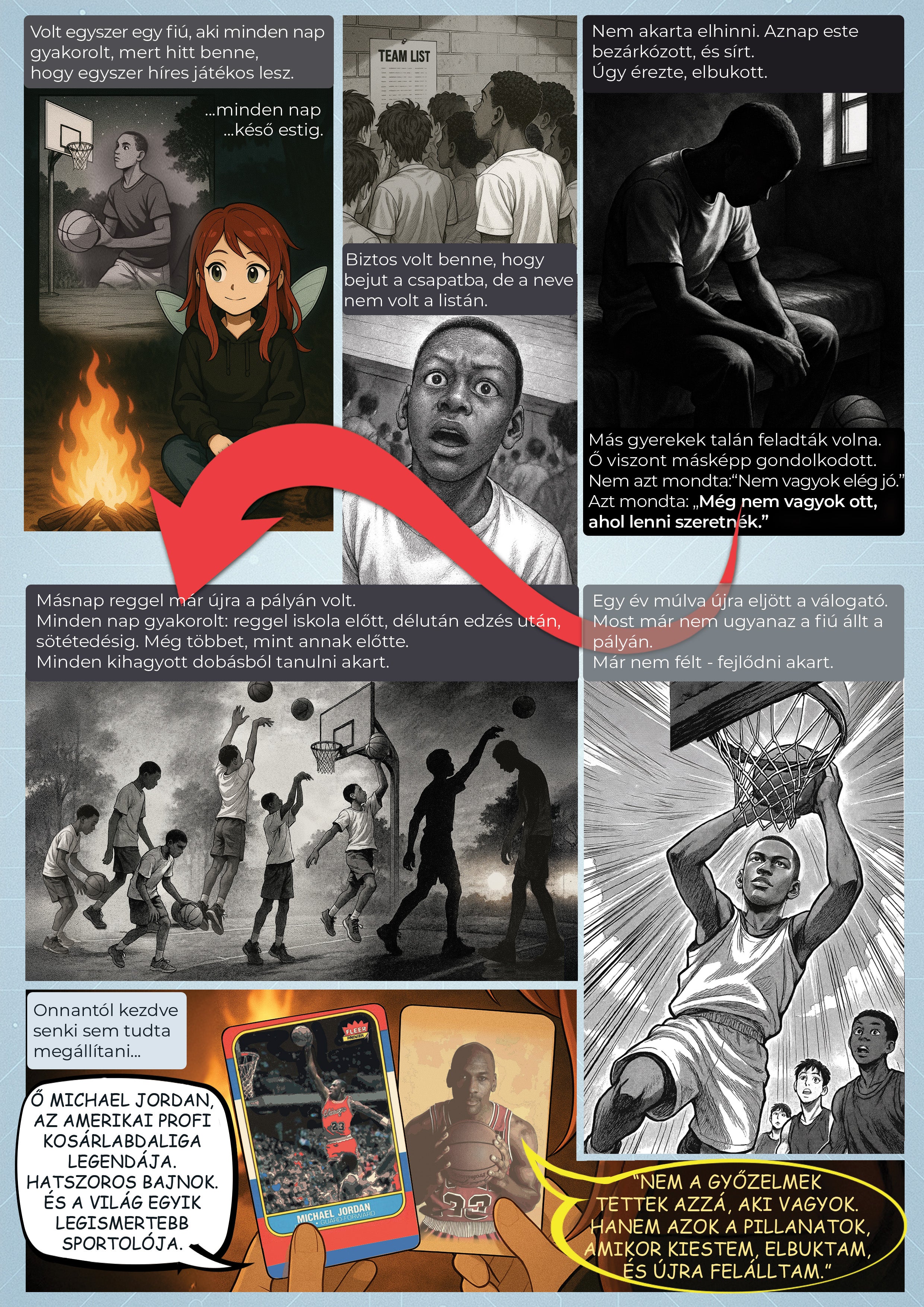 Példák- példaképek, bajnokok történetei, amelyek segítenek más szemmel nézni a hibákra.